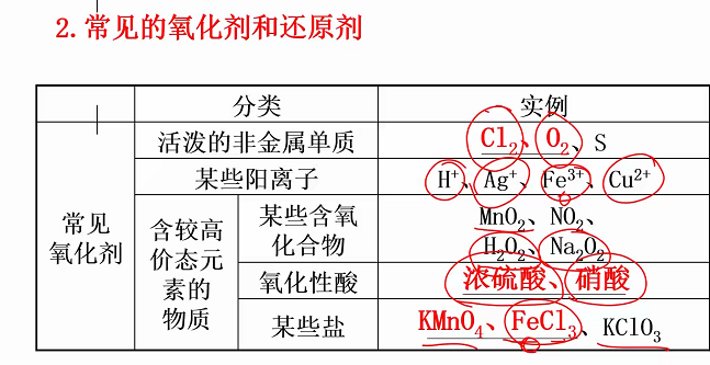 # 氧化还原反应 # 概念 # 氧化还原反应与四种基本类型的关系 - 置换反应 分解反应 复分解反应 化合反应 氧化还原反应 √ √ - √ 非氧化还原反应 - √ √ √ 有单质参加或生成的反应,一定是氧化还原反应?× 有单质参加或生成的置换反应,一定是氧化还原反应?√ # 常见氧化剂或还原剂 # 氧化性和还原性强弱的比较 整理化学