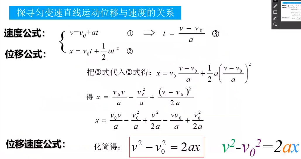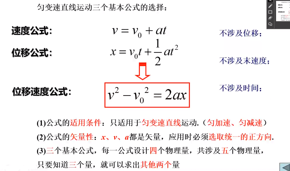 # 常用公式 # 匀加速直线运动 # 基本公式 v=v0+atv=v_0+atv=v0+at v0t+12at2v_0 t + {1 \over 2} a t^2v0t+21at2 v2−v02=2axv^2 - v_0^2 = 2 a xv2−v02=2ax # 推论 vt2=v‾=v0+v2v_{t \over 2} = \overline{v} = {v_0 + v \over 2}v2t=v=2v0+v △x=at2\triangle x=at^2△x=at2 整理物理
